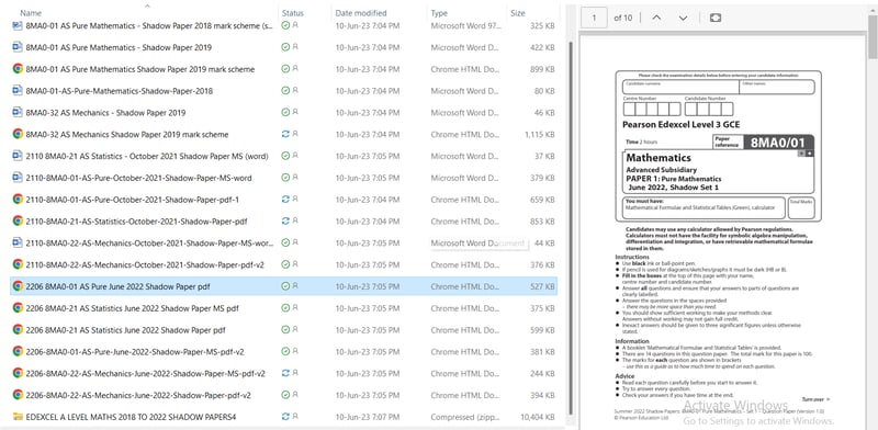 EDEXCEL AS LEVEL MATHS 2018 TO 2022 SHADOW PAPERS