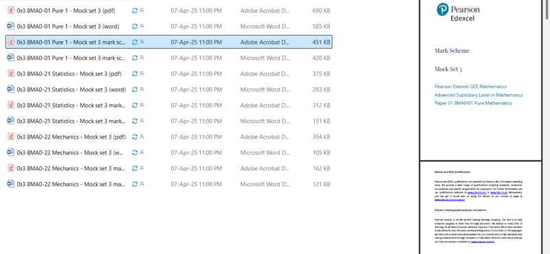EDEXCEL A LEVEL MATHS MOCK SET 1 + 2 + 3 (DOESNT INCLUDE MOCK SET 4 AND 5)
