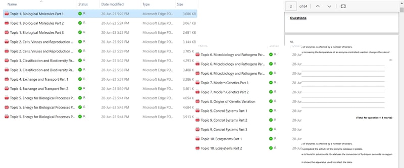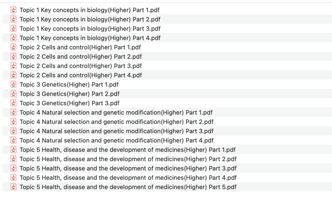 EDEXCEL GCSE BIOLOGY TRIPLE SCIENCE TOPIC BASED QUESTIONS