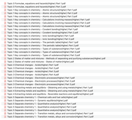 EDEXCEL GCSE CHEMISTRY TRIPLE SCENCE TOPIC BASED QUESTIONS