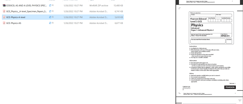 EDEXCEL AS AND A LEVEL PHYSICS SPECIMEN PAPERS