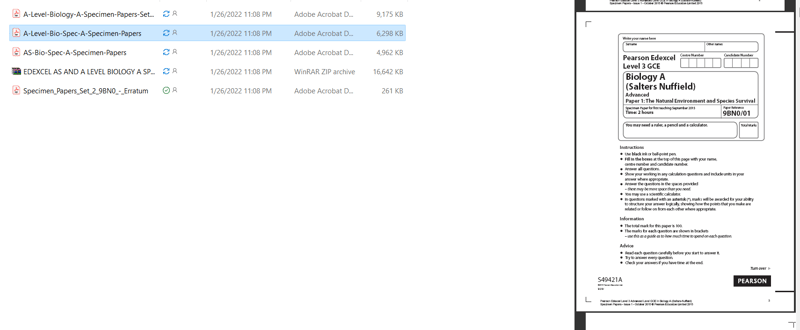 EDEXCEL AS AND A LEVEL BIOLOGY B SPECIMEN PAPERS